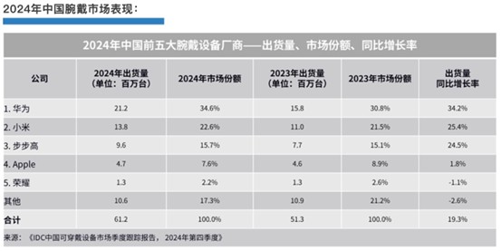據(jù)全球權(quán)威數(shù)據(jù)機(jī)構(gòu)IDC的統(tǒng)計(jì),2024年,華為腕上可穿戴設(shè)備的出貨量同比增長率登頂全球榜首,展現(xiàn)出強(qiáng)大的全球增長勢頭。而在競爭尤為激烈的中國市場,華為智能手表已連續(xù)6年穩(wěn)居市場份額第一的寶座。