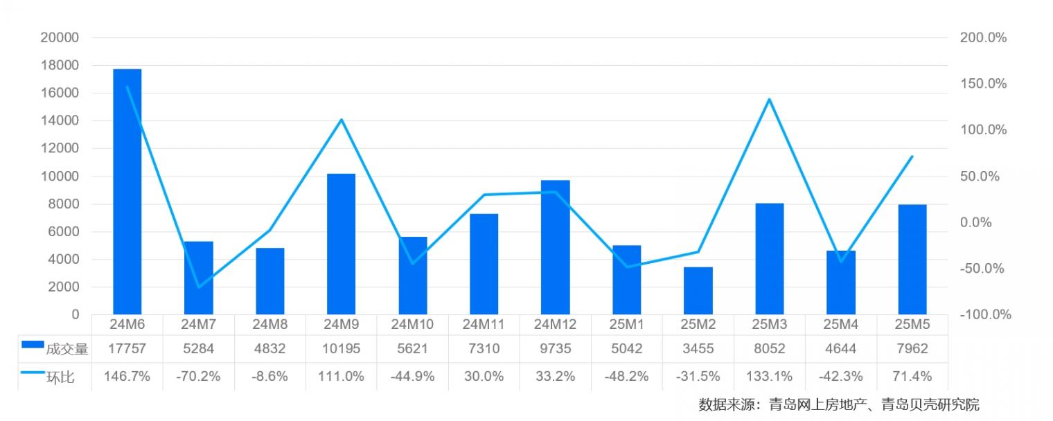 青島5月新房交付7962套,環比提升71.4%