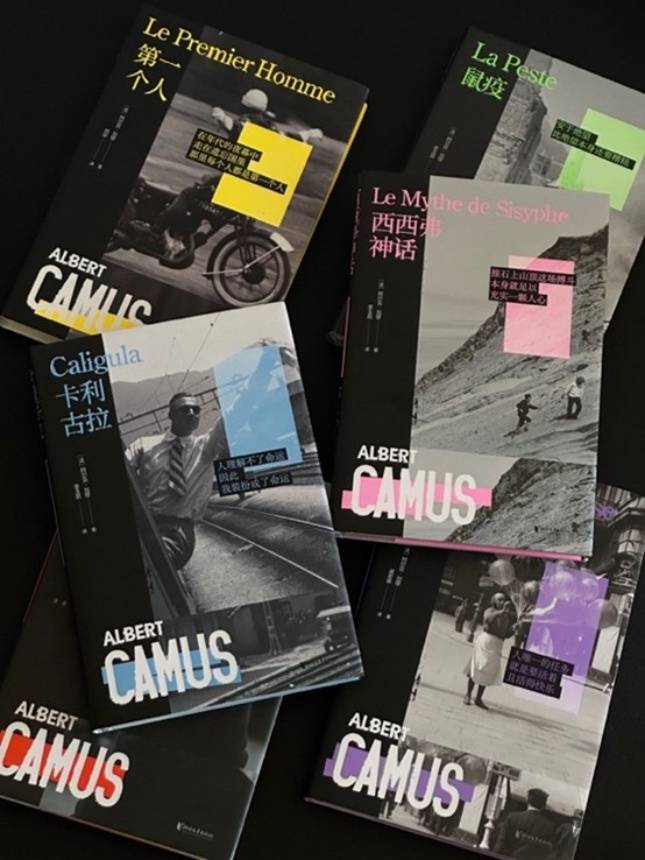 近日,浙江文藝出版社推出了重磅新書《加繆作品集》(刷邊版)。這套作品集包含了諾獎作家加繆的六部經典代表作:《局外人》《鼠疫》《西西弗神話》《快樂的死》《卡利古拉》和《第一個人》,由資深譯者李玉民、劉華和梁若瑜擔綱翻譯。裝幀設計上獨具匠心,除了采用法語金句作為刷邊之外,還在函套設計中巧妙運用了熒光潘通色和黑白照片的顏色對撞,以此彰顯加繆的荒誕哲學與反抗精神。此外,隨書附贈的海報、年譜和文身貼設計也別出心裁。