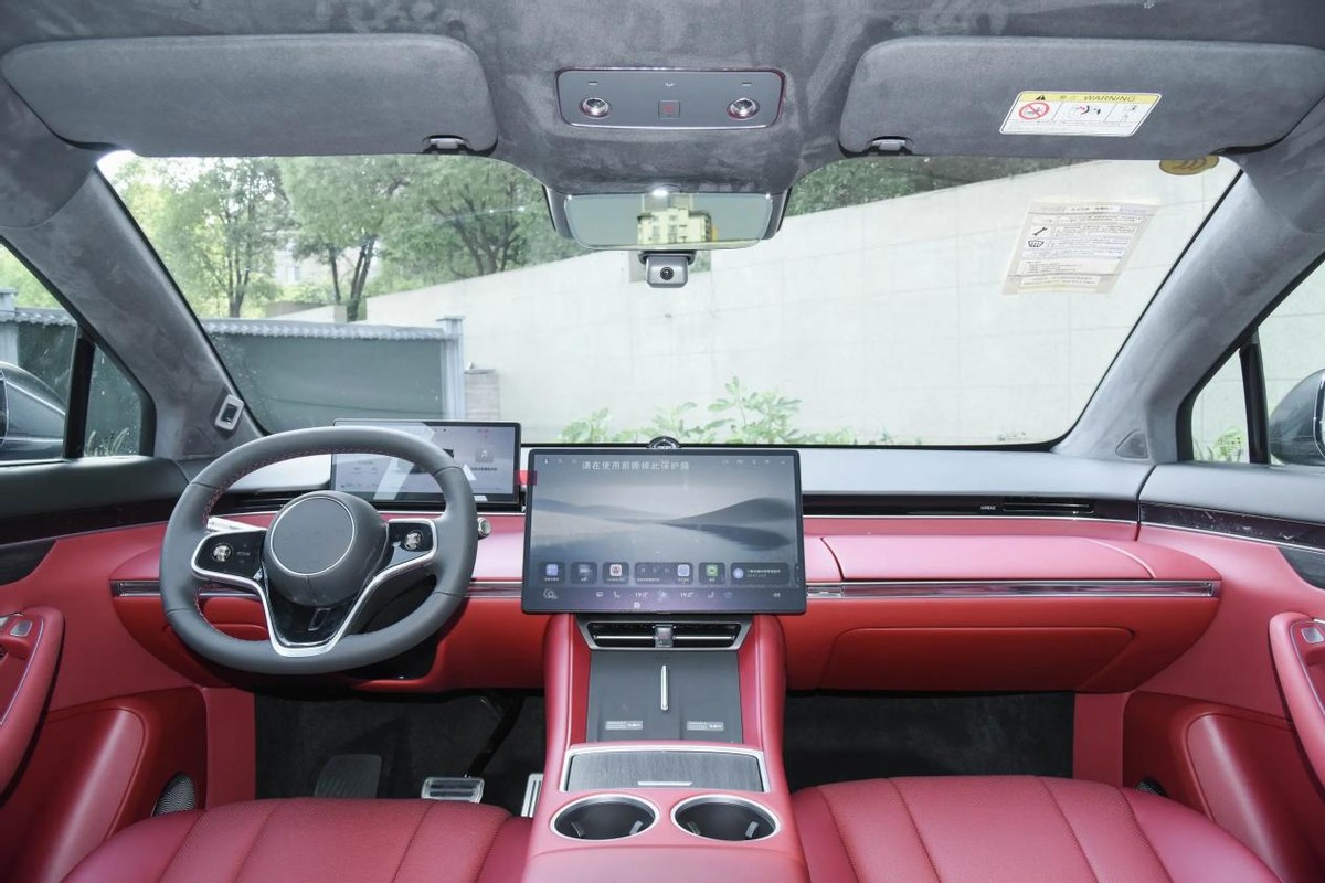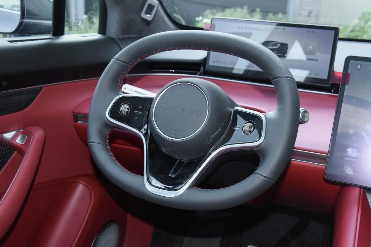 看完了外觀部分,緊接著咱們再來看內(nèi)飾,可以看到智界R7車內(nèi)的設計風格,基本上是和外觀遙相呼應,采用了圓潤前衛(wèi)的設計語言,前排T形環(huán)抱式座艙,加上造型獨特的三幅式方向盤,帶來了不錯的駕控沉浸感。另外可以看到,智界R7車內(nèi)還采用了大量的軟包內(nèi)飾包裹,并且還配備了紋理飾板、鍍鉻飾條來裝飾,因此檔次感、豪華感表現(xiàn)也都在線,符合它高端車型的市場定位。
