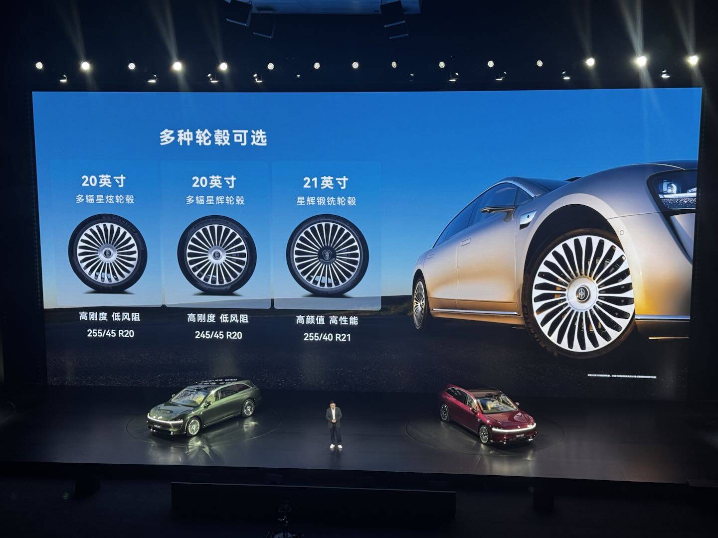 享界S9T這次也用上了新設計的車標,而帶有百萬像素投影的星河大燈、光澤細膩的星云尾燈,也讓它的細節拉滿。還有一點,享界S9T三款輪輞全部都是多幅樣式,不但風格統一,也都能最好的呈現出這臺中大型旅行車的貴氣。