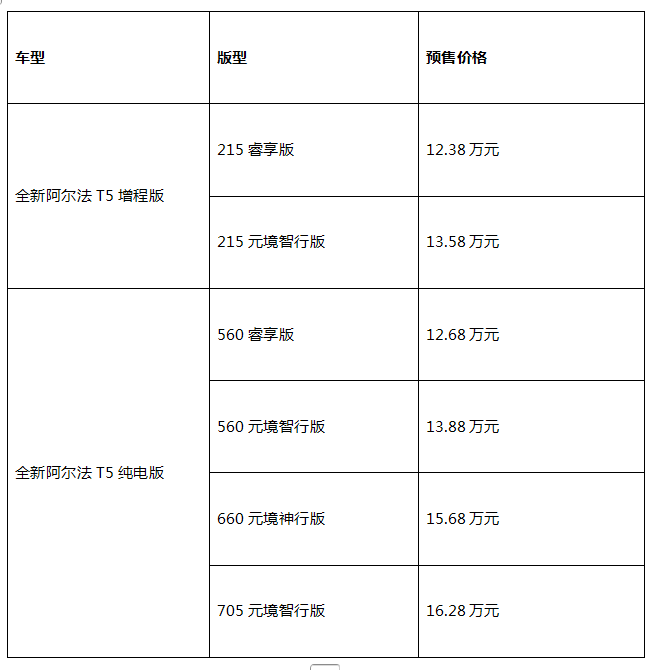 10月14日,極狐全新阿爾法T5宣布開啟預售,共推出6個版型,包含純電和增程兩種動力形式,預售價格12.38萬元—16.28萬元。